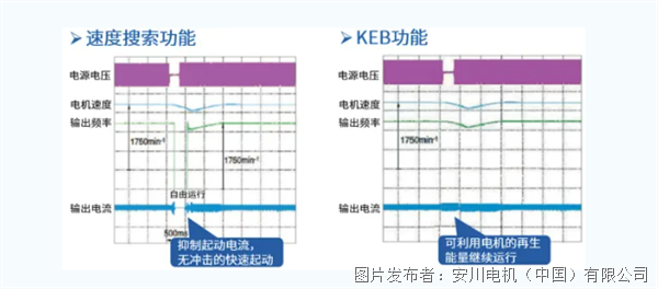 在瞬时停电的场合,通过减速手段,利用机械惯性能量继续控制电机运行,不报警。