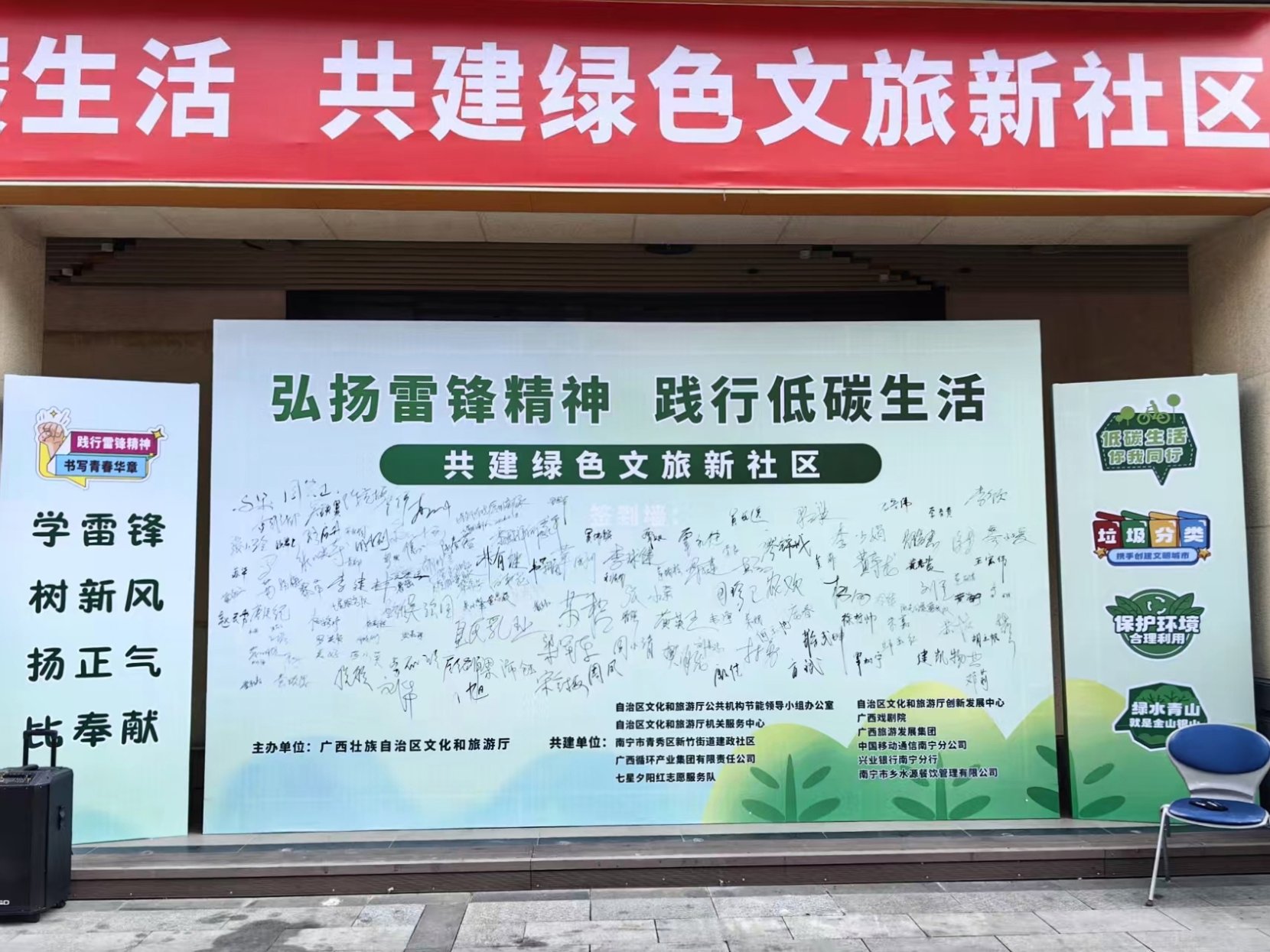 此次活动是自治区文化和旅游厅将公共机构节能降碳与弘扬雷锋精神相结合的生动实践。下一步,我厅将持续发挥公共机构在节能降碳中的示范引领作用,开展更多接地气的活动,推动绿色发展理念走进基层、融入生活,带动群众践行绿色生活方式,为推进美丽广西建设贡献文旅力量。