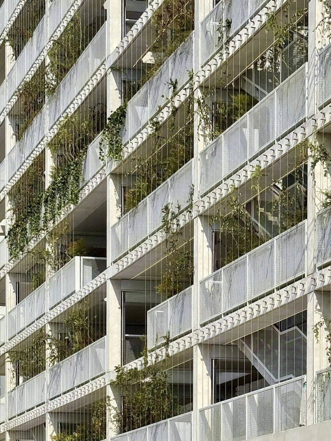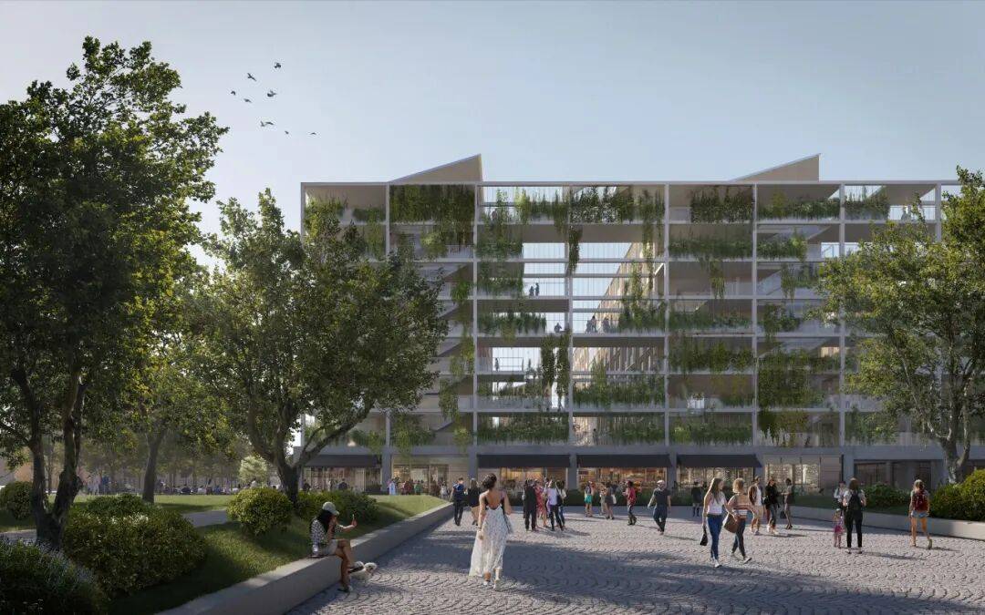 项目采用模块化设计与预制幕墙系统,缩短工期并降低碳排放;结合太阳能屋顶、屋顶绿化、被动冷却与垂直植被等生态策略,实现节能与气候调节。材料优先选用本地、低碳、可再生产品,强化可持续理念。