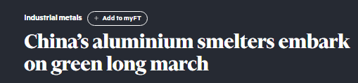 《金融时报》的文章称,中国产量最大的山东某私营铝业企业预计今年将在云南文山建成其第二座铝冶炼厂,届时,其在云南的年产量将达到400万吨,相当于北美整个铝业的年产量总和。文章关注到,该企业的报告指出,此次搬迁,再加上其在山东和云南对太阳能及风能项目的投资,将使公司的碳排放量减少约三分之二。