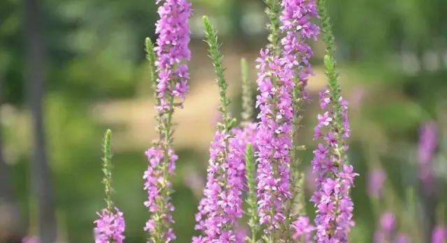 花红紫色,花色清丽,夏、秋可开两季花,穗状花序,花茎挺立,是难得的竖线条花材。